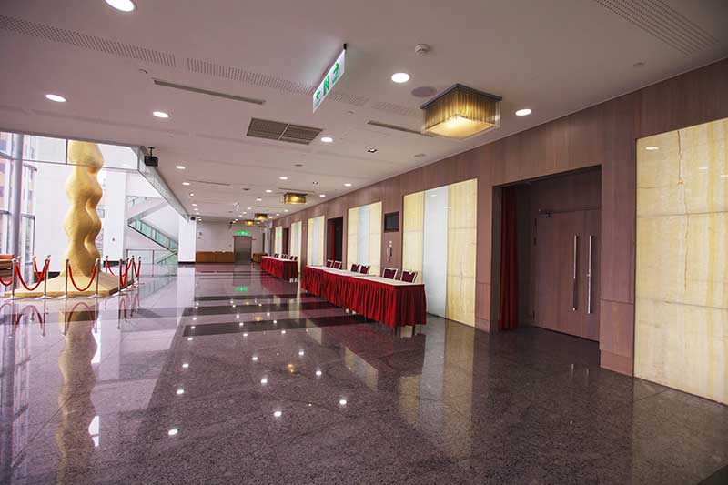 A grand building with glass curtains walls, NTUH International Convention Center looks like a crystal castle on the serene, verdant campus of NTUH. The retro, unsophisticated school buildings, along with Japanese Zen pot plants, complement its grassy-green gardens. Large, simple, artistic sculptures are displayed in various corners of the center, and standardized convention space and brand new software/facilities are offered, too. NTUH International Convention Center is truly one of the rarely-seen centers that manifest an artistic taste and modern, international capabilities in Taipei City.