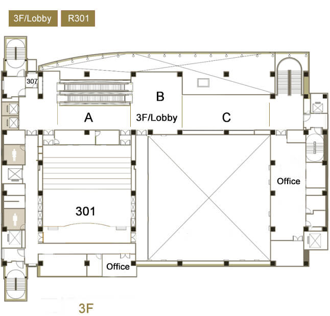 3F HOME Venue Venue 3F ※ Floor plan download / Site price list download Inquiries : 02-7724-0109# 1/ 663 Reservations 1F 2F 3F 4F 3F / Lobby More R301 More «1»